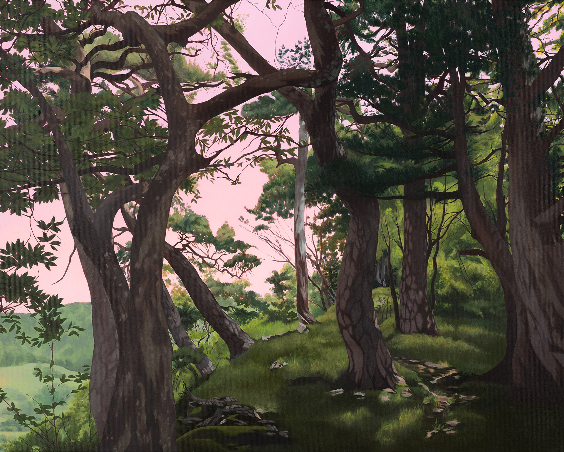 The forest speaks in many languages. In «Knorriwald / The Path Only We Know», it becomes memory and refuge: ancient trees guarding a hidden path, a sanctuary of silence and belonging. In contrast «The Breath Beneath» transforms the essence of the forest into rhythm and energy – a pulse of colors and patterns echoing earth, light and vegetation. Together, these works reveal two dimensions of the same inner landscape: one rooted in place and memory, the other in the elemental forces that lie beneath. A dialogue between what the eye encounters and what the spirit senses.