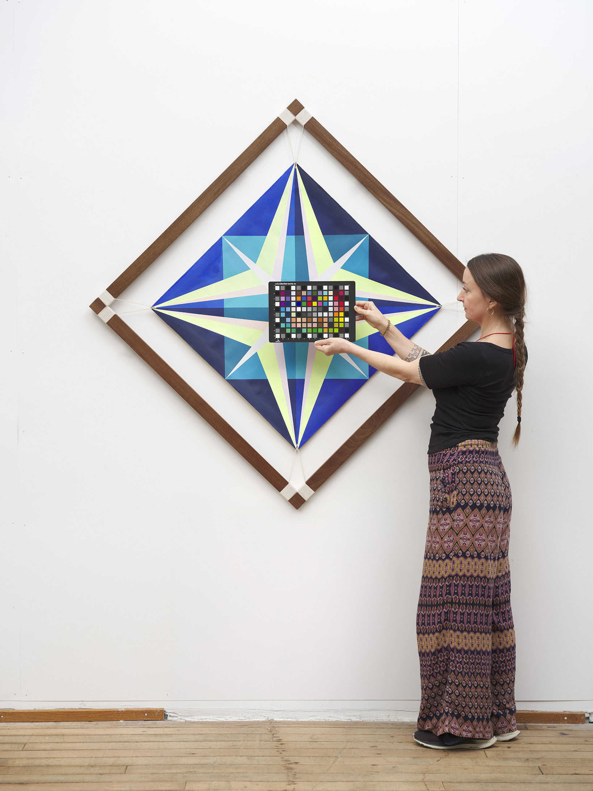 The composition therefore moves between expansion and containment. Energy radiates outward through the geometric structure, while the frame and the tension of the construction hold this movement in equilibrium. Boundaries are not presented as limitations, but as conditions that allow energy to remain present and sustained.